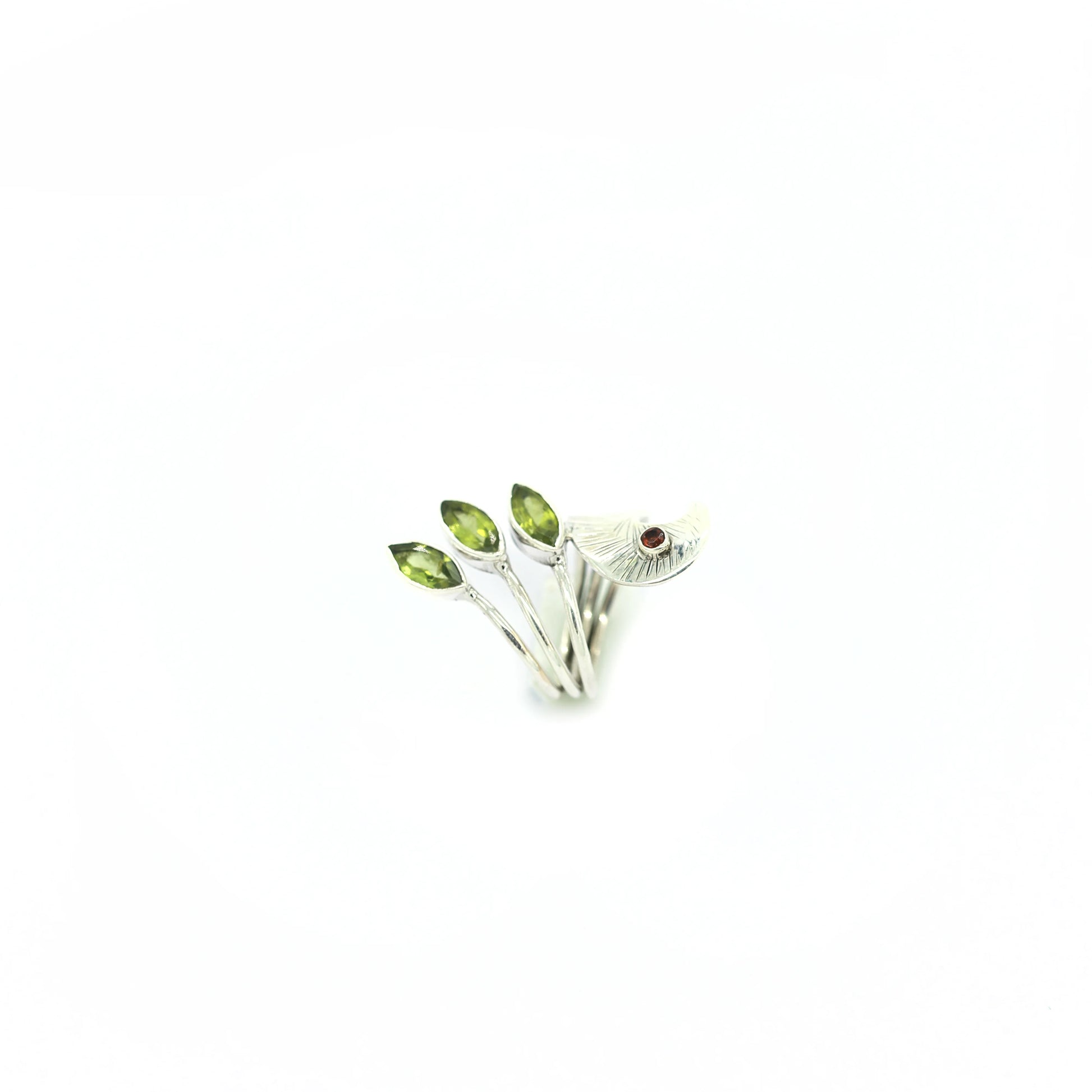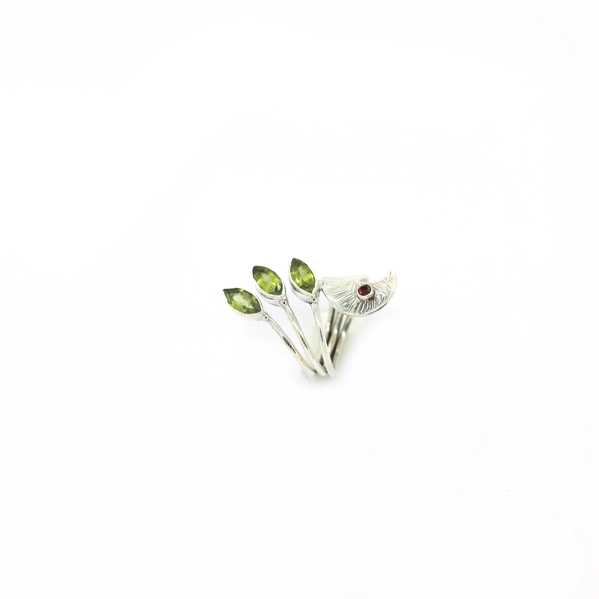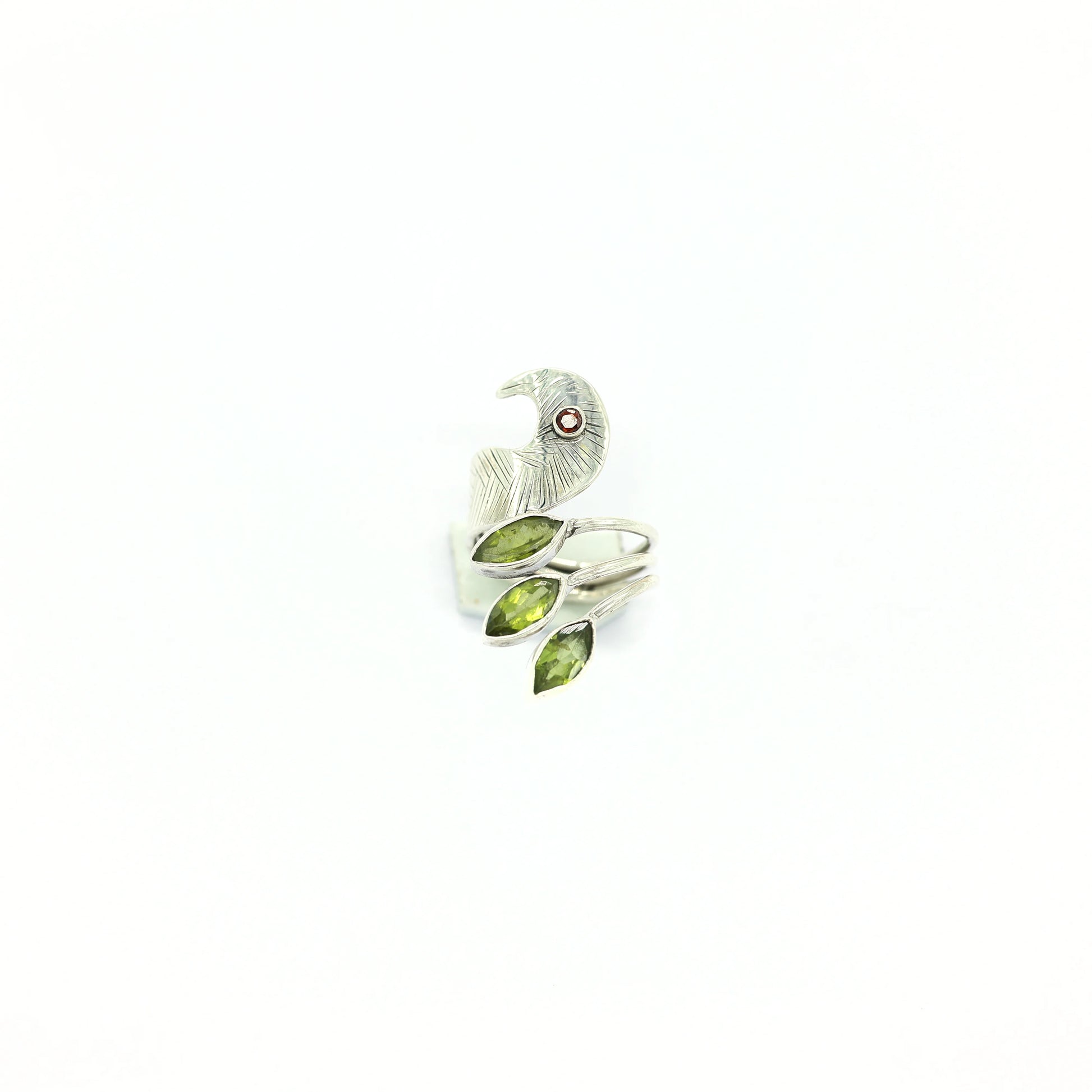Handmade 925 Sterling Silver Peridot Peacock Ring – Artisan Statement Jewelry
