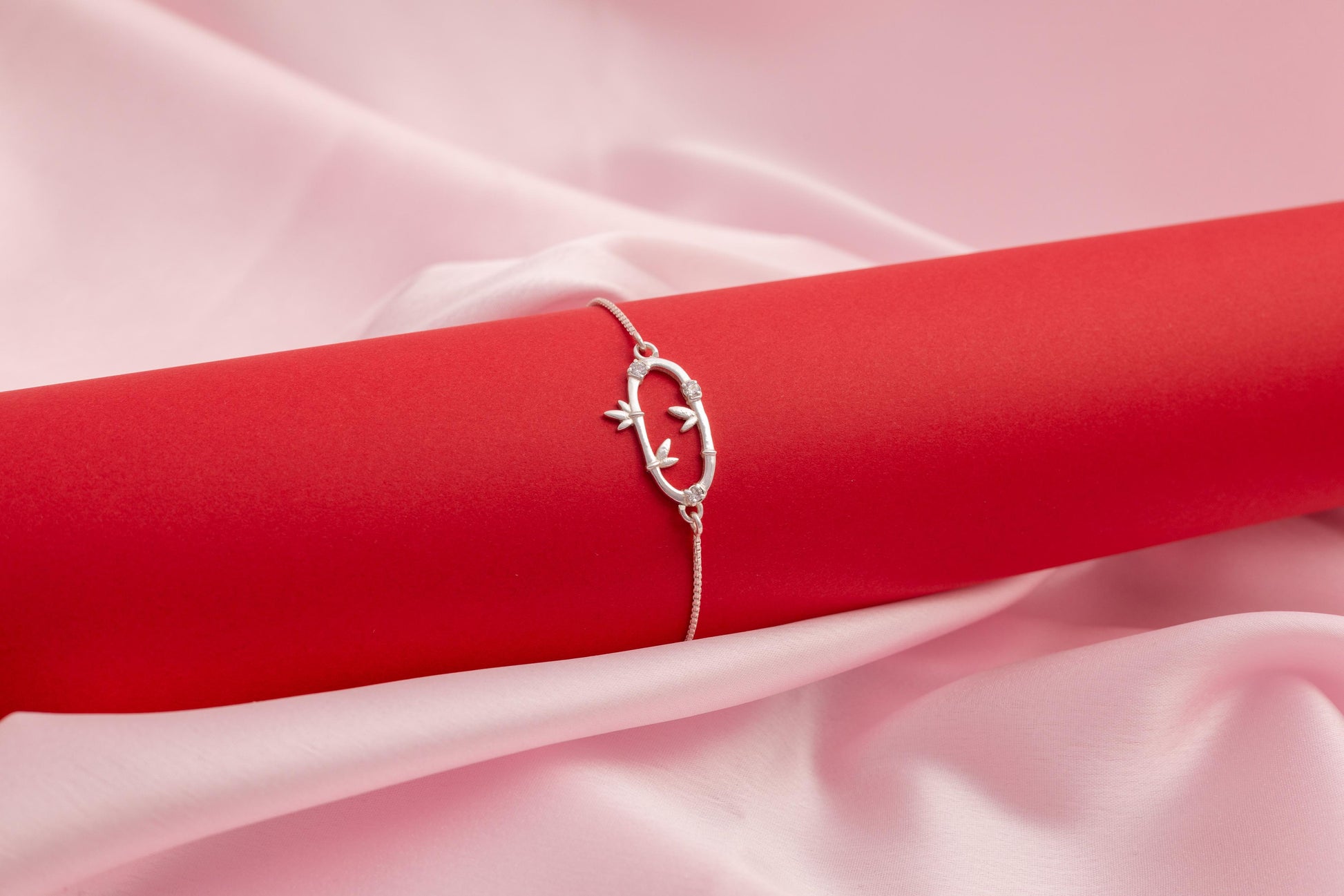 Inspired by the elegance of nature, this bracelet features a delicate oval-shaped bamboo motif crafted in a polished silver-tone finish. The design is adorned with tiny bamboo leaves, evoking tranquility, resilience, and organic beauty. A minimalist yet meaningful accessory, perfect for nature lovers and everyday wear.