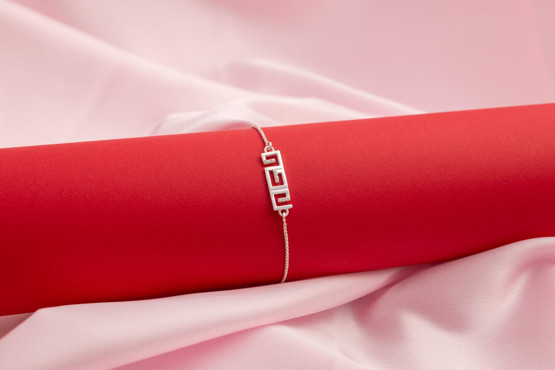 This sleek bracelet features a geometric centerpiece inspired by traditional Greek key or maze patterns, crafted in polished silver-tone metal. With clean lines and a symmetrical design, it embodies modern minimalism with a hint of cultural heritage. Perfect for everyday wear or as a subtle statement piece.